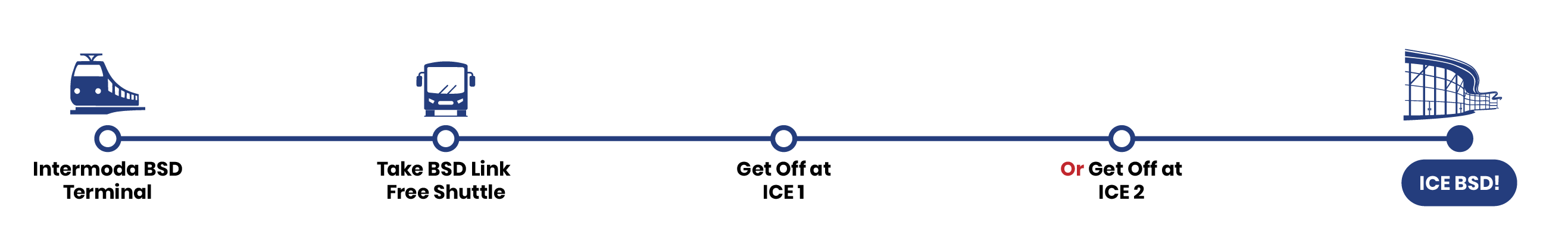 From Intermoda BSD Terminal, you can take the BSD Link free shuttle that provides direct drop-off at both ICE 1 and ICE 2 entrances, offering a seamless connection to the venue.