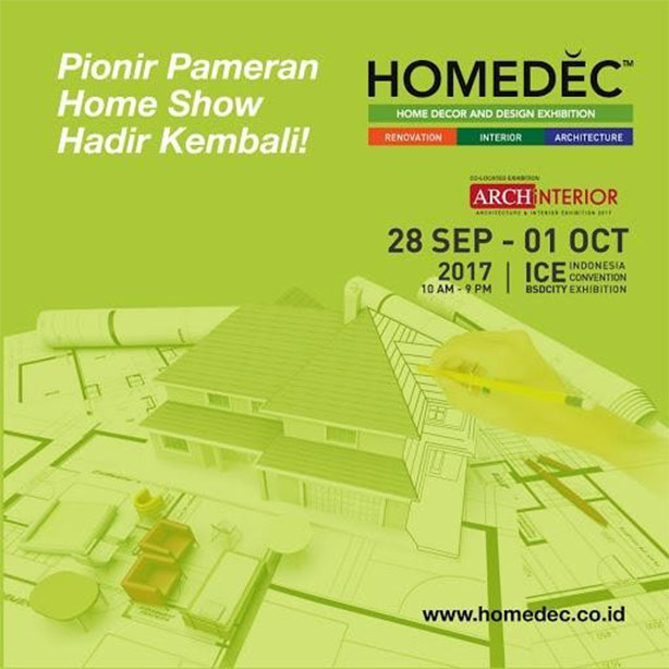 HOMEDEC 2017 will be held on the 28 Sept – 1 Oct 2017 at Indonesia Convention Exhibition (ICE), HOMEDEC 2017 will provide an exhibition for home renovation, interior & architecture ideas and concepts. For more information: homedec.co.id
