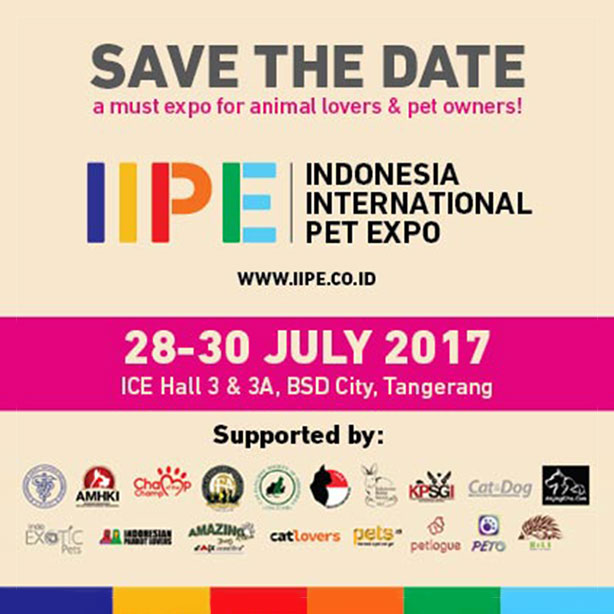 Indonesia International Pet Expo (IIPE) will be held at Hall 3 & 3A, Indonesia Convention Exhibition (ICE) BSD City. This pet exhibition is scheduled to be at ICE on 28th- 30th July 2017. The Indonesia International Pet Expo 2017 will enable your company to engage with relevant owners, managers, buyers, and associated professionals of pet care businesses from across Indonesia. For more information: www.iipe.co.id