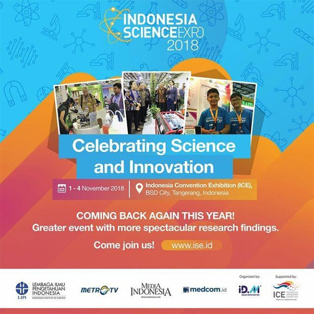 The first and the biggest science and technology fair, Indonesia Science Expo (ISE) 2018 (ISE) on 1 – 4 November 2018 at Indonesia Convention Exhibition (ICE) In 2018 ISE will be bigger with more researchers and scientists involved, with more research findings and technology projects at national and international levels. It will be a great momentum that anticipated by thousands of people in Indonesia, from industrial sector, students, science and technology communities, and many more who eager to watch the latest science and technology projects Register ISE 2018 here: www.ise.id